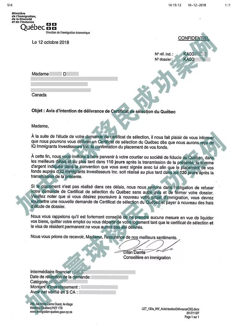 M女士是一家公司的純高管,家庭資產構成也比較簡單,比較麻煩的是居住意向的問題。M女士在移民之前,因為沒有咨詢專業人士,不僅把孩子送到多倫多讀高中,而且還在多倫多買了房,這就會讓魁省移民官質疑D女士的居住意向。加中寰球的文案針對M女士的情況,為其量身制定了嚴謹、科學的移民方案,最終消除了移民官對D女士居住意向的疑慮,獲得了免面試通過的好結果。恭喜M女士!